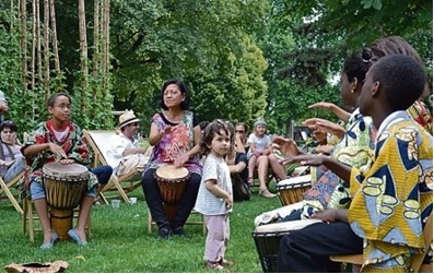 BuntES trommelt und bunt ist auch die Gesellschaft, die sich beim Ortswechsel vom CaféFlandern auf die Maille verwöhnen lässt. Foto: Schulze