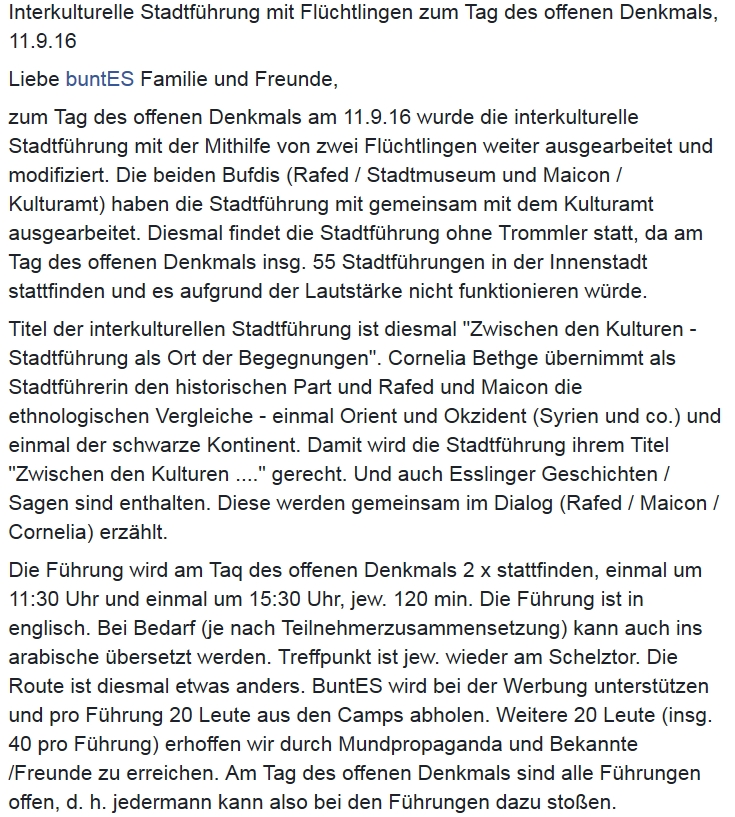 Werden versuchen, eine ähnliche Aktion mit buntES, im Laufe des Jahres nochmals im etwas kleineren Kreis zu