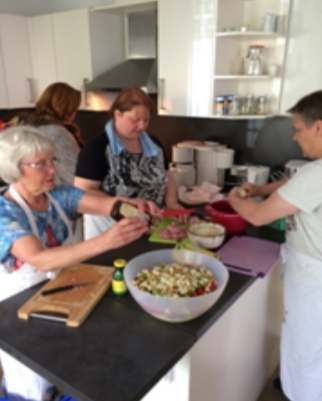 Im Wohncafé auf dem Zollberg genieße ich manchmal das leckere Essen beim Mittags-tisch. Aber nicht nur, ich helfe auch mit bei den Vorbereitungen. Dass mich das glücklich macht, würde ich nicht sagen, aber vielleicht sind ja die anderen glücklich, wenn ich mithelfe. Und das macht mich wiederum glücklich. (Christel Winkler, 73)