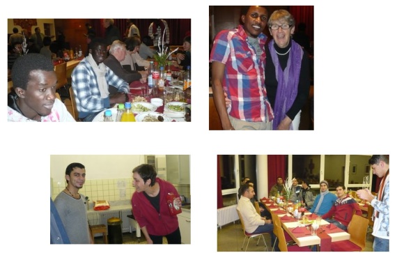 Silvesterabend am 31.Dezember 2014. Um 19:00 Uhr wurde der katholischen Gemeindesaal im Hangelstein Zell, Esslingen am Neckar langsam von den Gästen gefüllt. Die Tische waren hübsch, geschmückt von Silvesterdekora-tionen. Ein besonderer Tag für die Männer von der Gemeinschaftsunterkunft Esslingen-Zell. Das war ihre erste Erfahrung, den Jahreswechsel in Deutschland zu verbringen. Getrennt von der Familie, in einem fremden Land. Jedoch, waren sie heute Abend nicht alleine. Schon vor dem Eingangstür empfingen ein paar Helferinnen und Helfer die Männer mit warmen und herzlichen Grüßen. Strahlende und lächelnde Gesichter wärmen den Saal; ganz im Gegensatz zu der gefrorenen weißen Silvesternacht draußen.