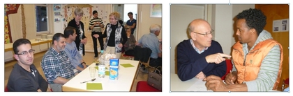 Die Schüles sind bei der Durchführung des Kulturcafés aber nicht alleine. Eva Röcker und ihr Ehemann Peter Röcker sind ebenfalls immer da und übernehmen sofort die Regie, wenn das Ehepaar Schüle nicht kann. Bis ca. neun Personen sind die treuen Helferinnen und Helfer im Kulturcafé. Sie sind ehrenamtliche Helfer bei der Raumvorbereitung, der Bedienung mit Kaffee und Kuchen, aber auch freiwillige Helfer, die den Asylsuchenden z.B. mit dem Papierkram von Behörden helfen, womit die Männer oft konfrontiert werden. Eine wöchentliche Begegnung tut den Männern von der Flüchtlingsunterkunft gut, so können sie regelmäßig für ein paar Stunden in einer anderen Atmosphäre außerhalb der Turnhalle etwas Schönes machen. Die gemeinsame Kaffeestunde im ev. Gemeindehaus ist aber nicht nur eine Begegnungsstunde, sondern auch ein Ort, wo die Flüchtlinge und Asylbewerber ihre Probleme, Sorgen und Ängste erzählen können. Ein Ort, an dem sie nicht alleine sind, denn sie wissen Bescheid, dort gibt es jemanden, der ihnen zuhört, ihnen hilft oder vielleicht ihre Probleme löst.